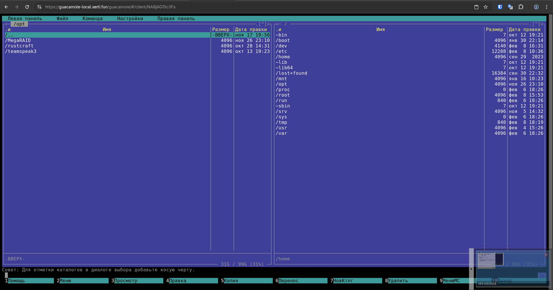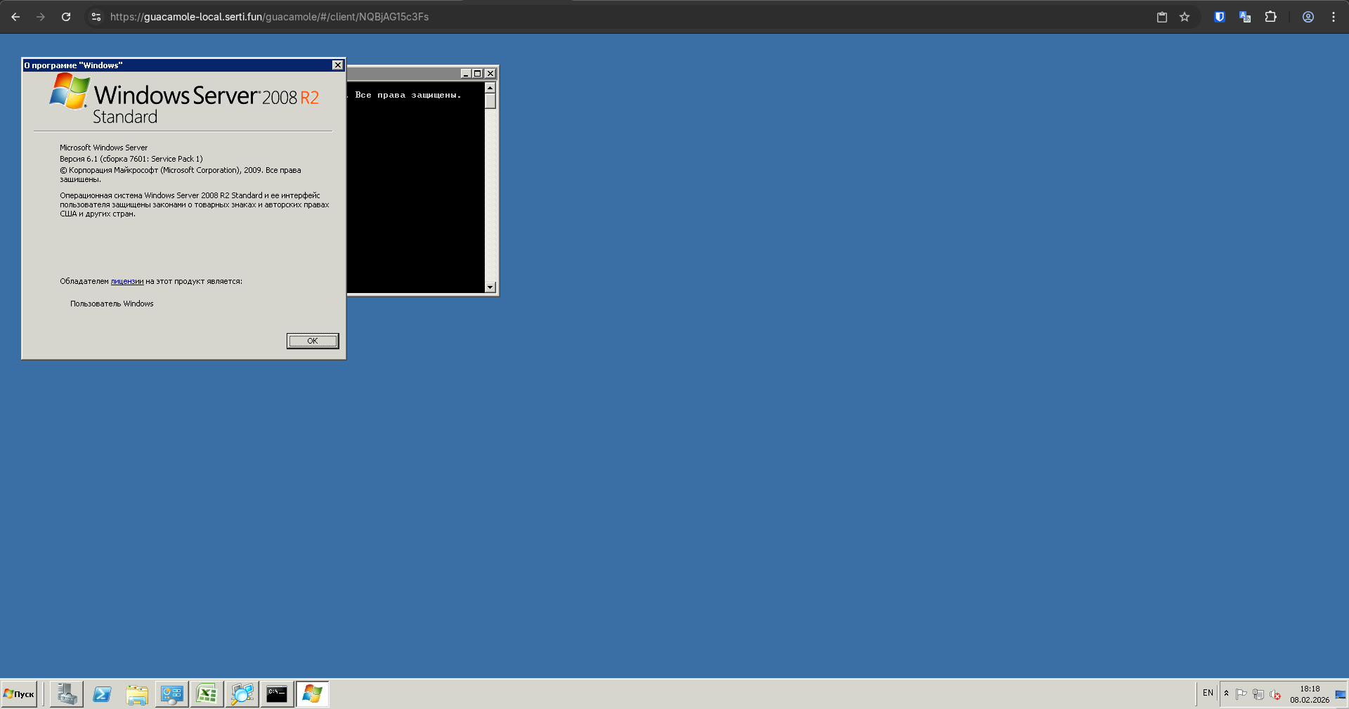 | Основная страница Guacamole | Windows server 2009 через Guacamole |