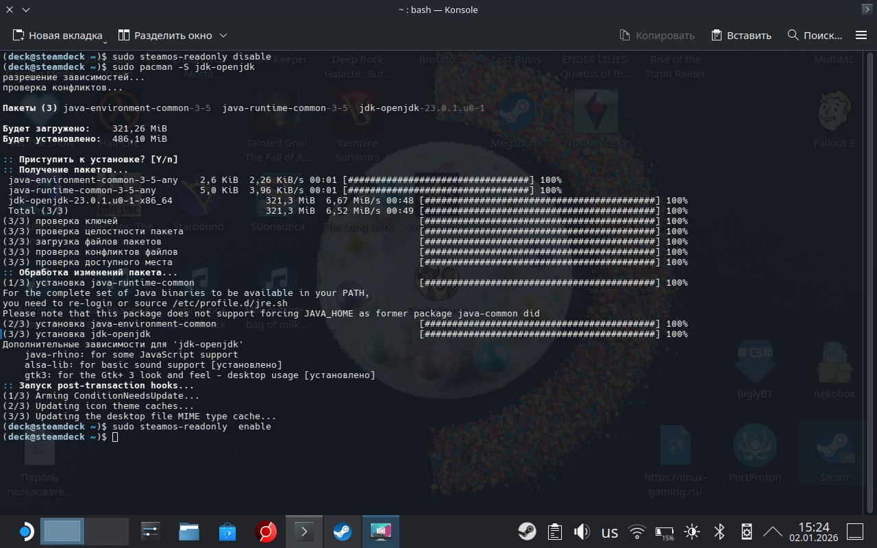 - Подтвердите личность, если запросит, введя пароль учетной записи deck.